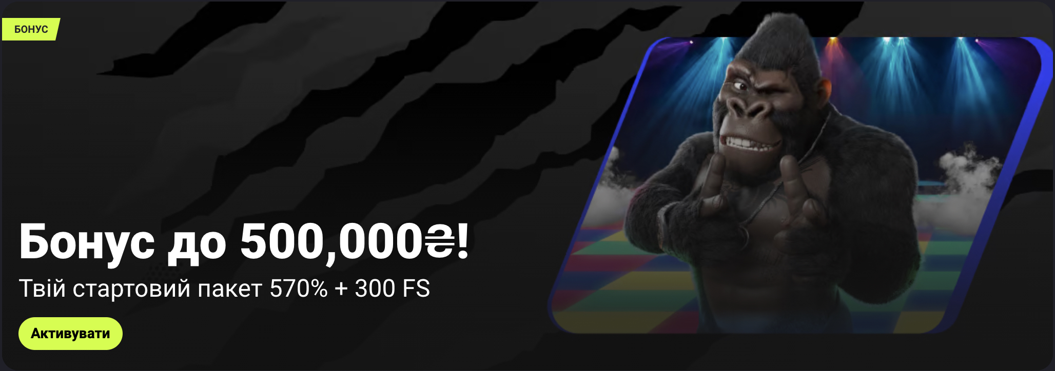 Бонуси | Привітальний пакет до 10 000 грн + 100 фріспінів |